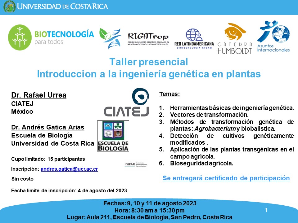 Taller teórico práctico: Introducción a la ingeniería genética de plantas; 9 al 11 de agosto del 2023. En colaboración con CIATEJ, México